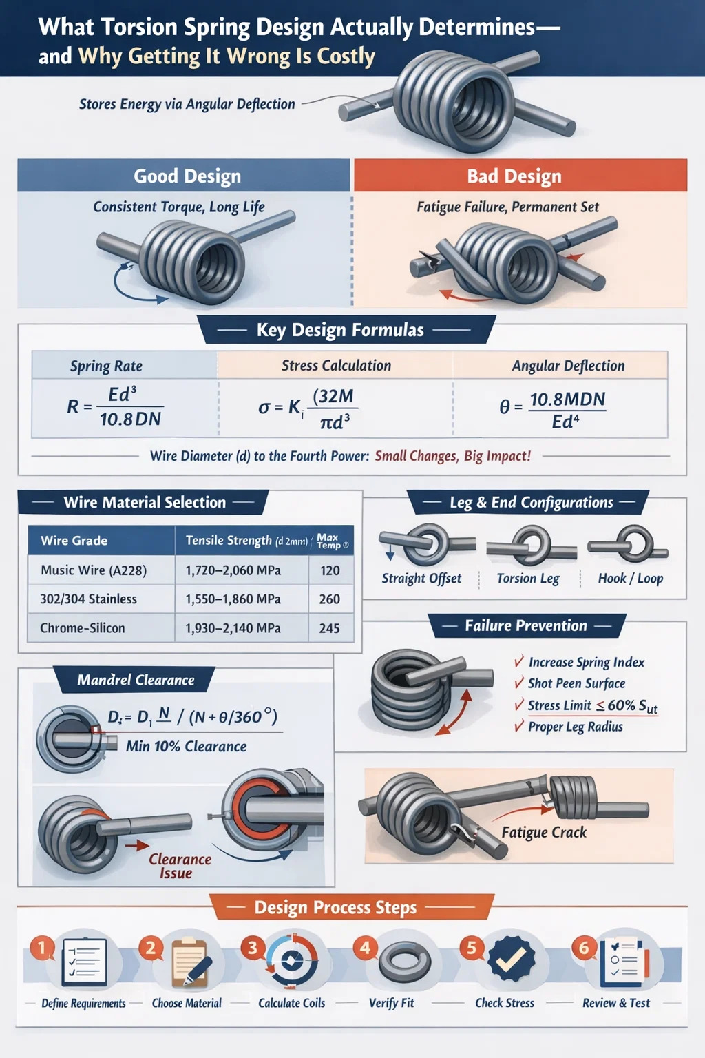 Acest articol parcurge întregul proces de proiectare: de la ecuații fundamentale și selecția materialului până la constrângerile de fabricație impuse de mașinile cu arc de torsiune, moduri comune de defecțiune și strategii practice de toleranță utilizate în producția de volum mare.